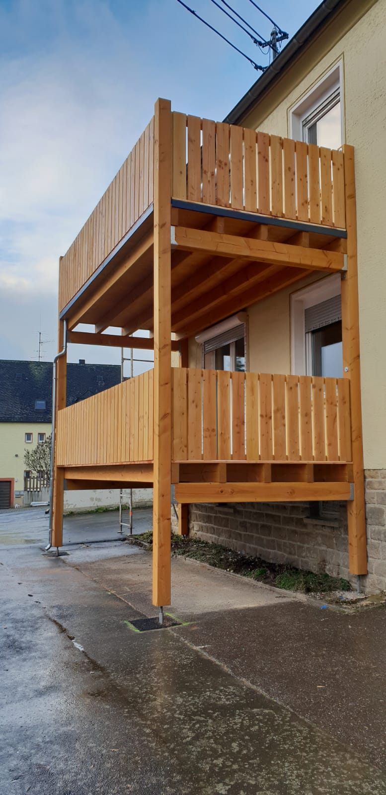 Ob als Aussenverkleidung, Geländer oder als für ihren ganzen Balkon. Mit Holz setzen Sie auf einen beständigen und attraktiven Werkstoff.